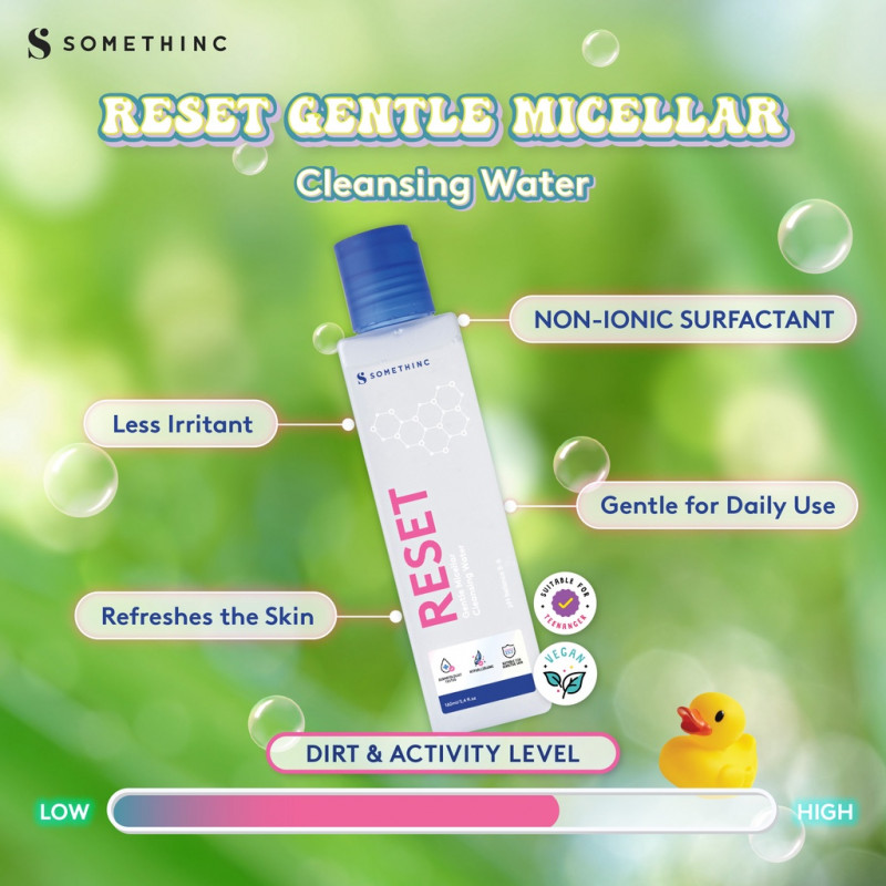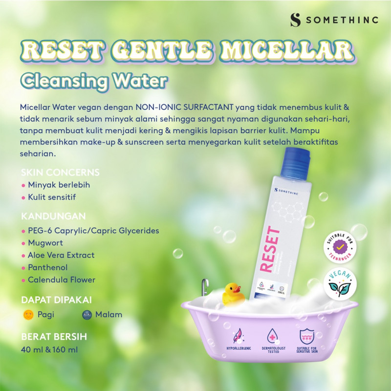 A vegan Micellar Water with NON-IONIC SURFACTANT that does not penetrate the skin & does not attract natural oil sebum, so it is very comfortable for daily use without drying the skin & damaging the skin barrier.  It removes light make-up, sunscreen & refreshes the skin after a day's activities.